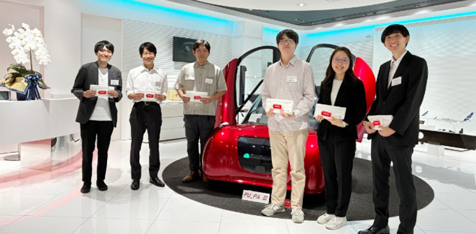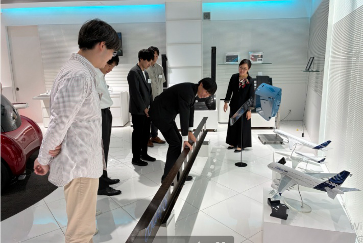 続いて、帝人のショールーム「未来スタジオ」を見学。実際の製品展示を通じて、大学での研究が社会にどう活かされているかを体感いただきました。特に、自身の研究分野と関連する技術に触れた奨学生からは、「研究室では得られない実感が得られた」との声もありました。